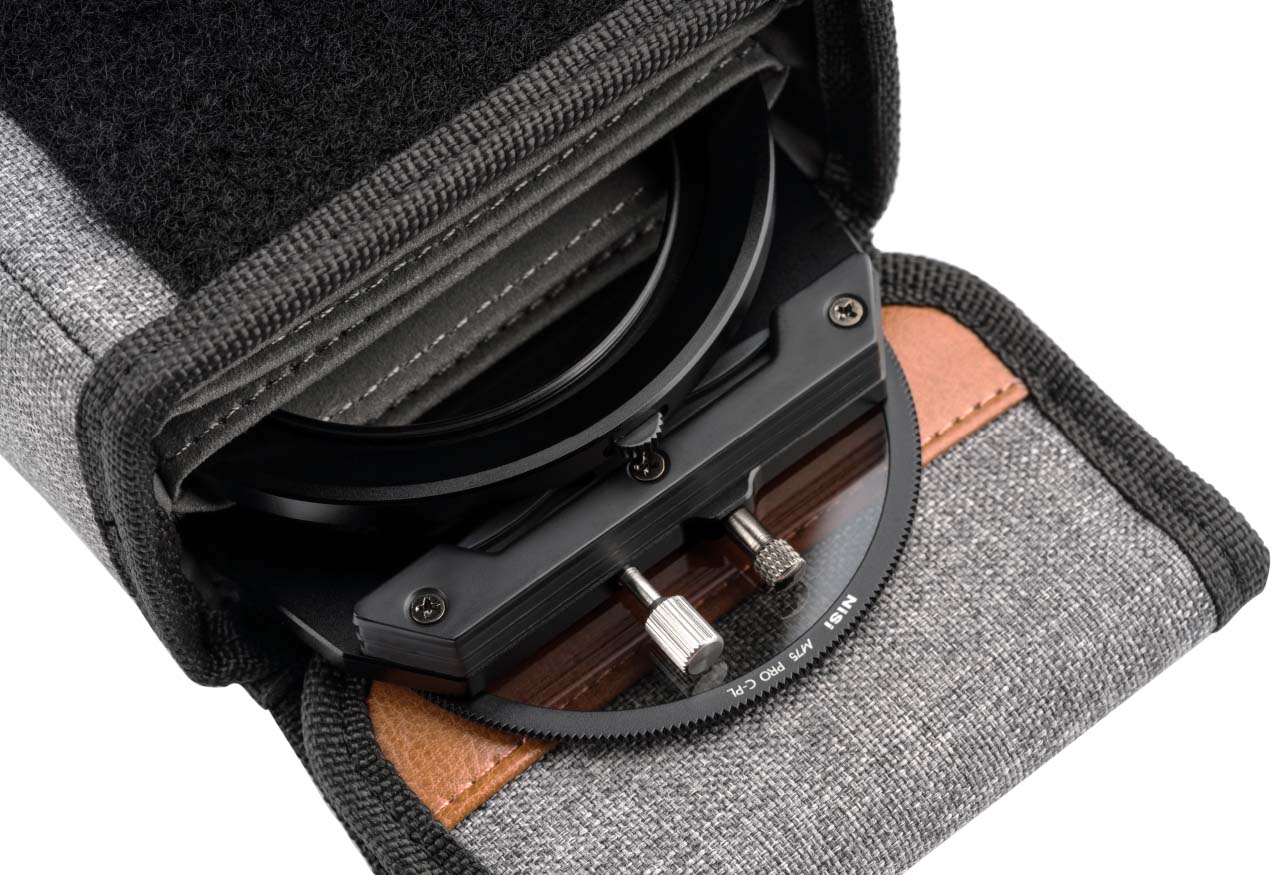 M75系统依然沿用V5支架的设计,齿轮式拔盘内置CPL设计。收纳包可容纳5片75系统方镜,前支架三点卡位,同时我们在侧面特别设计了锁紧螺丝,在风光构图确定的时候,可以使用锁死螺丝固定前支架。