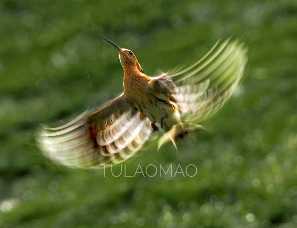 在这里我一直认为,慢门拍摄只要你把鸟的飞行轨迹拍好,就是一幅好的作品,不必太在意某个部位清楚不清楚。当然在慢门拍摄中能够拍出虚实对比的片子,那是更高的追求目标。