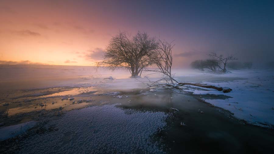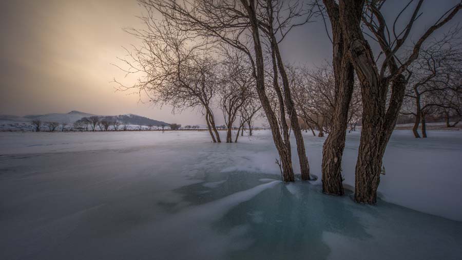 2018年1月初,我和我的团队来到心往已久的坝上,试图以我的视角,打破传统的拍摄方法,利用12毫米的超广视角、运用慢速度去表现冬坝的美丽。此次坝上之行所带设备:尼康D800、佳能5Ds、适马12-24F4、Nisi180mm NiSi ND1000和ND64。