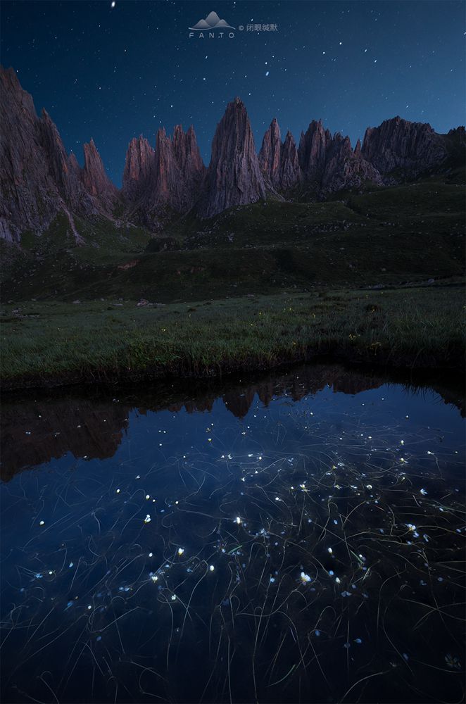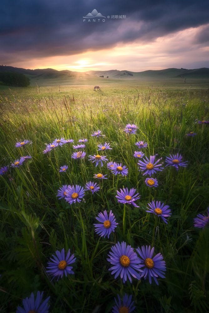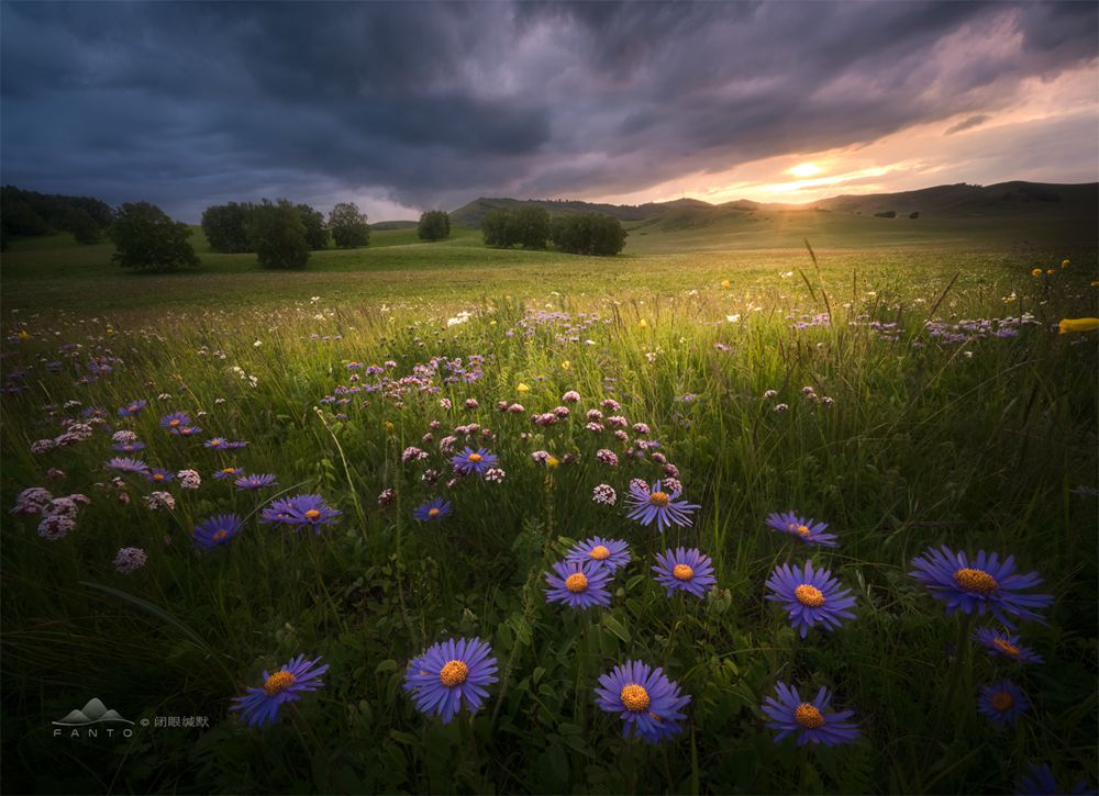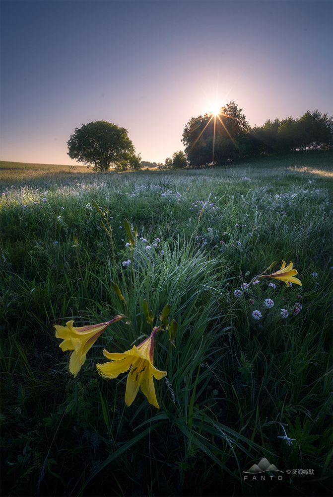 拍摄时,仍然采用了多焦点拍摄后期进行合成,因为有风,花朵总是晃动,如果快门速度不够,花肯定都会虚掉,所以这张照片,针对花我使用了F8的光圈,ISO400,让快门速度尽可能的高,针对前景的花拍摄了5张不同对焦点的照片,但是拍摄到远景的时候,就无所谓快门速度了,那我就使用ISO250,F11的光圈,尽可能的让星芒显得更为锐利,对远处山体对焦,拍摄明暗两张来保证天空细节。后期进行了焦点合成和曝光合成,所以最终大家看到的参数是天空的参数。