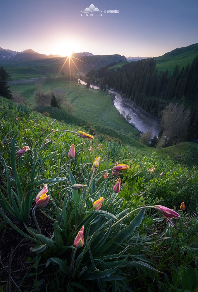野郁金香在新疆伊犁境内开的范围比较大,那拉提和唐布拉开放的更多一些,不过这种花株比较低矮,平均高度在10-15公分左右,甚至这些花比周围的草丛还要低,这就为构图造成了很大的障碍。