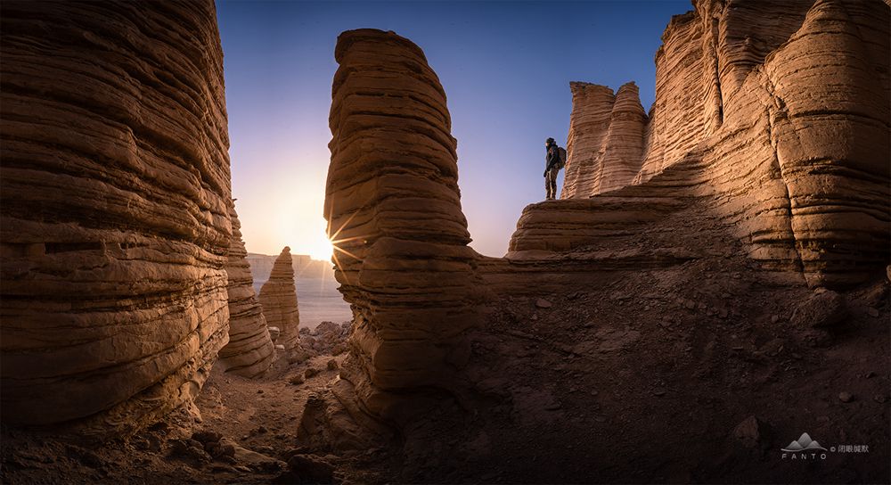 同时这个逆光的场景,用石笋将太阳遮挡一部分,就会露出非常漂亮的星芒。