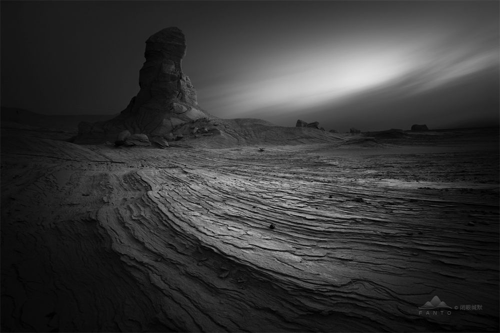 下图这张与上面那张的构图结构类似,拍摄方法相同,只是天色因为沙尘的原因,显得天比较灰蒙,这种情况我们可以考虑使用黑白,只要突出影调和明暗反差就可以,而不必为调色再伤头脑。