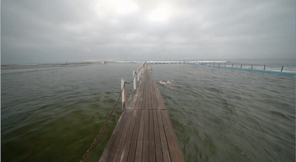 使用偏振镜后水面杂光被有效消除,泳池的颜色和对比度有了明显的变化,木栈桥上纹理的细节也显现出来。