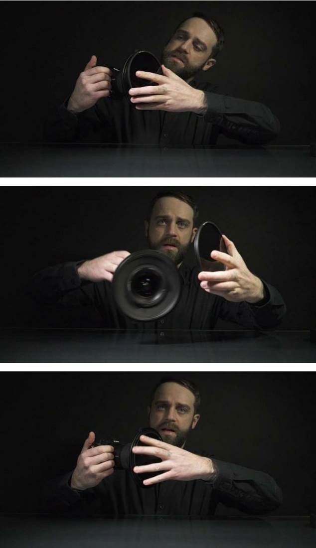 接下来就是圆镜系统的安装,用手扶住齿轮保持固定不动,另一只手顺时针旋转即可轻松把镜片上好。S3套装包含一个圆形偏振镜,如果需要其他滤镜例如:ND、风光CPL、ND64+CPL、UV可以另购。