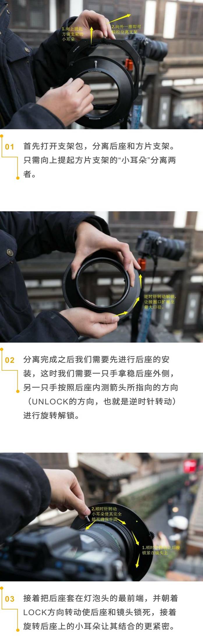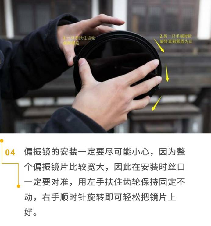 在把相机架好一切准备就绪之后,就开始滤镜的安装了。安装滤镜有一共有几步呢?第一步打开冰箱门,第二步把大象装进去,第三步关冰箱门·········