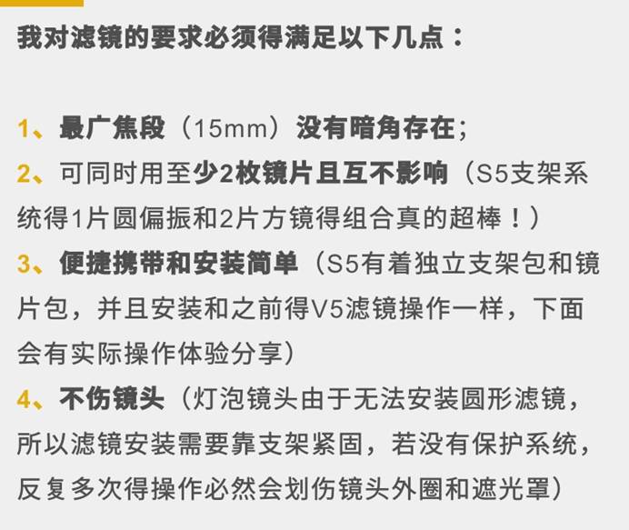 所以,S5支架套装几乎可以实现承载所有滤镜组合,这更加决定了S5再整个摄影滤镜系统中的霸主地位!